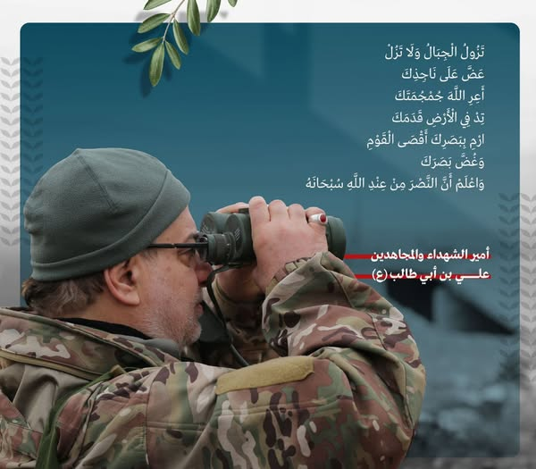 In the post shared by Hawraa on October 2nd, two images of Mohammed, one in which he is seen standing in front of a tank, dressed in full military fatigues, is included alongside a photograph of him holding a young girl, perhaps a daughter, and smiling. In an image shared by @ayaalatat, Mohammed’s bust is shared on an edited image in the style of a martyr’s photograph. Including the Hezbollah logo, an inscription at the bottom of the photograph refers to Mohammed as “الشهيد السعيد المجاهد على طريق القدس” or “The martyred Mujahid on the path to Jerusalem”. The invocation of “mujahid” here, coupled with the image of Mohammed in front of the tank, have resulted in Airwars’ classification of Mohammed as a militant. This will be updated should further information become available.