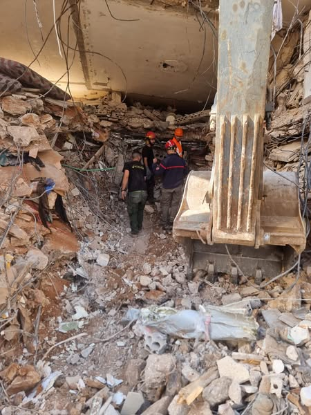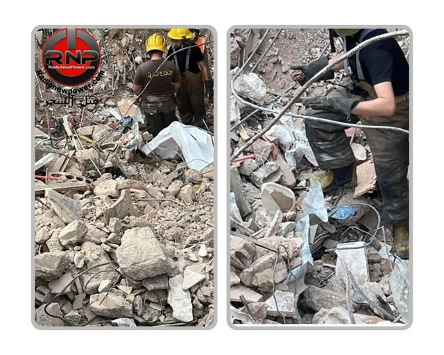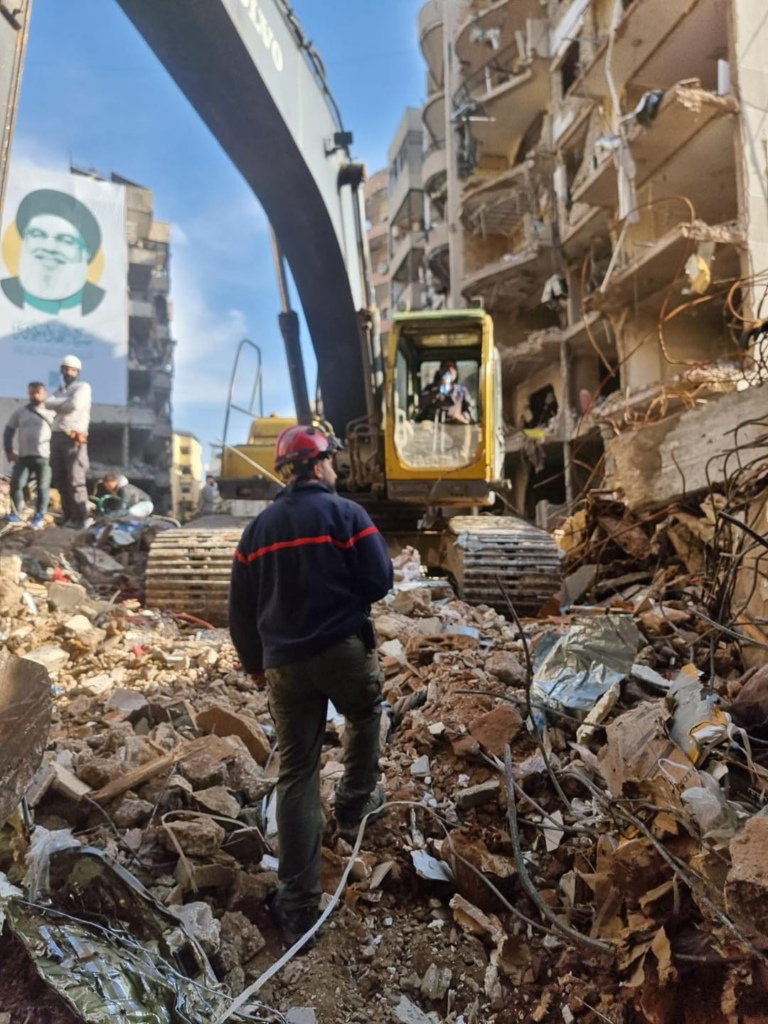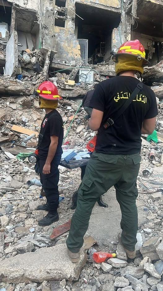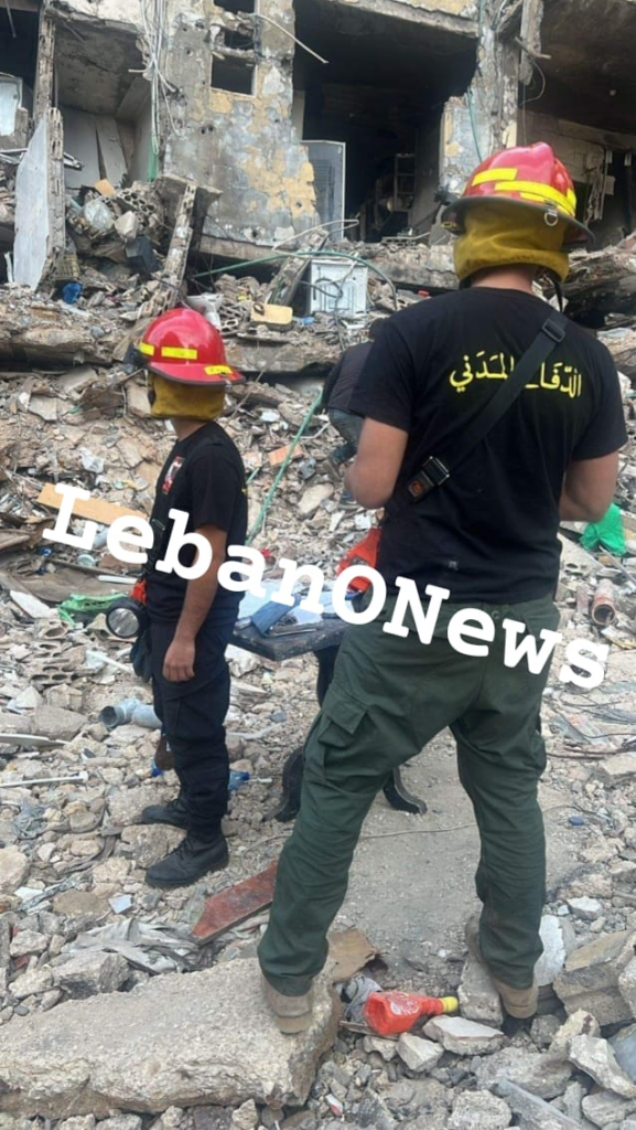 That same day, Facebook account bintjbeil.org also shared images of civil defense personnel supposedly working to uncover the remaining missing bodies “of 3 people in Haret Hreik”.