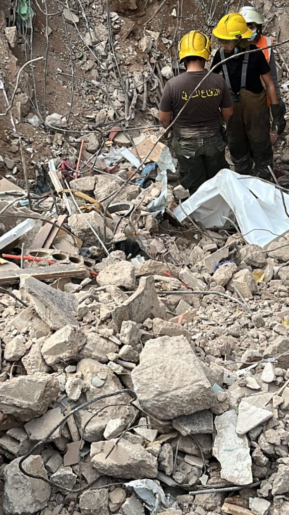 While the strikes on Haret Hreik occurred on September 27th, 2024, reporting on the incident subsided in the days following. On December 20th, 2024, Facebook account “CivildefenseLB” shared a statement “issued by the General Directorate of Civil Defense at the Ministry of Interior and Municipalities”. The statement read: “based on recent information available to the General Directorate of Civil Defense about 7 people who are still missing in the Haret Hreik area, Ayoub Building, near Al-Amiliyah, as a result of the Israeli aggression on the area on September 27, the specialized search and rescue teams at the General Directorate of Civil Defense conducted a comprehensive field survey of the site, which resulted in finding the bodies of 3 martyrs who were transferred to Beirut Governmental Hospital to conduct DNA tests to verify their identities.” The post ended with the note that “The search and rubble removal operations in Khiam and Haret Hreik will continue tomorrow until all the missing persons are found.”