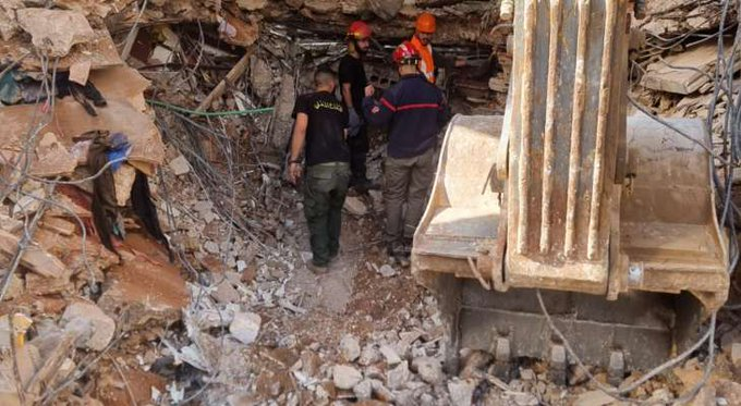 Sharing two videos of the rescue crews and civil services who were working to find those trapped under the rubble and transfer injured to the hospital, Al-Manar wrote that “two children were pulled out alive from under the rubble.” In one of the accompanying videos, two very small children are hurriedly carried into vehicles belonging to civil defense organisations, including the Islamic Health Authority. Reflecting this, a Telegram account, Echo of Dhahieh Page, shared an image of a member of the civil defense holding a very young girl. The accompanying caption reads “A child was pulled out alive from under the rubble in the southern suburb”.