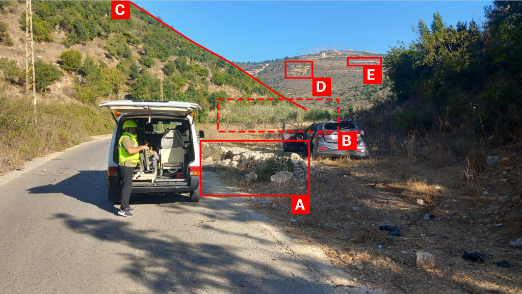 A photograph of the aftermath of the incident, shared on the Echo of Dahieh Page Telegram channel and by other sources, showed the damaged car, which had run off the road in the aftermath of the incident.
