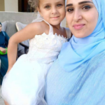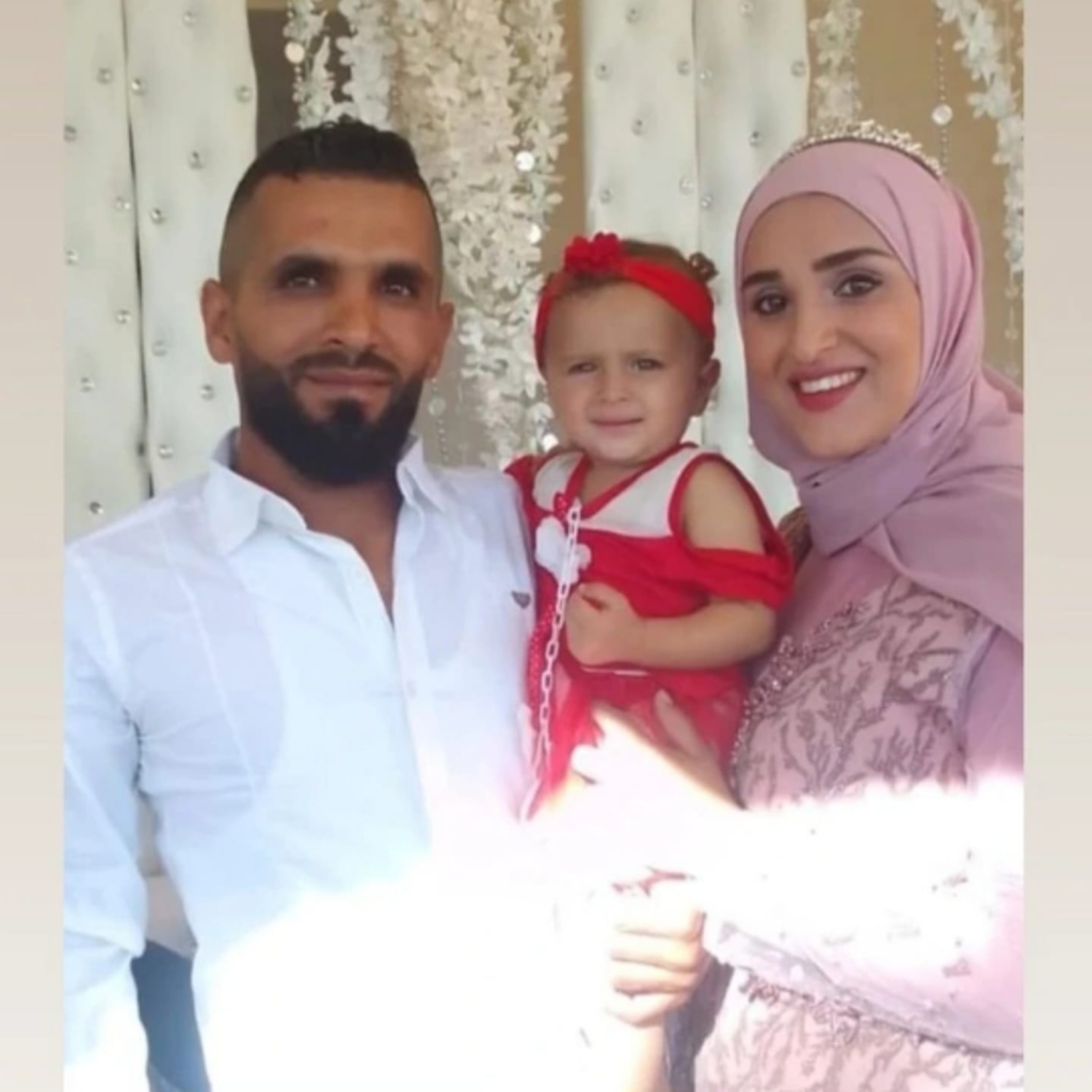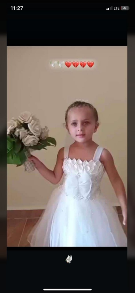 Norma shared on Facebook pictures of Dima and her family. In one of them, Dima is seen wearing a pink hijab matching her dress, appearing alongside a man and a child in what seems to be a family portrait. In another photo, a little girl – likely her daughter and possibly Nadeen – is pictured wearing a white dress, her hair neatly tied up, holding a bouquet of flowers.