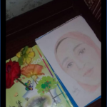A screenshot of a social media story seemingly shared by Dima, shows a hand-drawn portrait of her. The picture, Dima captioned, “made [her] day”.