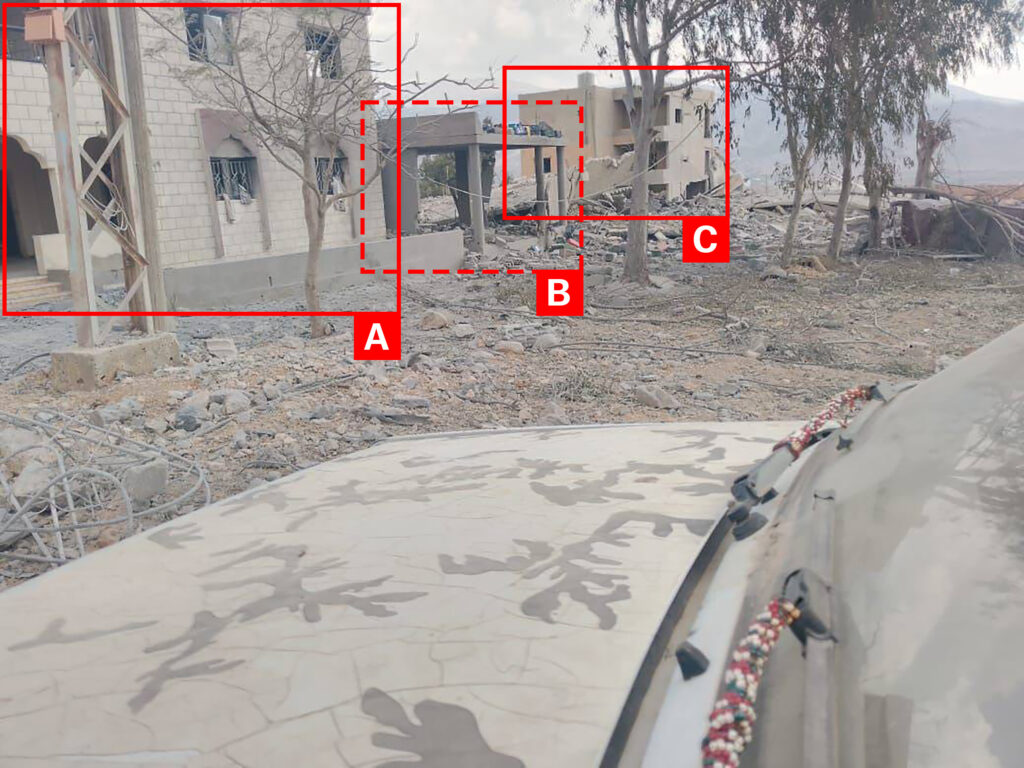 Reports of the incident mention a residential building being struck in Wata al-Khiam (وطى الخيام). Analysing audio-visual material from sources, we have narrowed the location down to the following exact coordinates: 33.305977, 35.615870.