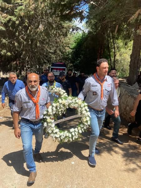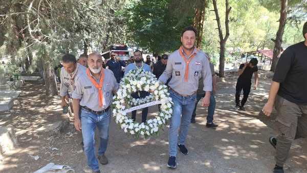 Additional pictures shared by of the National Education Scouts, Nabatieh Al-Fawqa Troop show a large procession of people accompanying Mahmoud’s body as it’s led through the street. Other pictures from Mahmoud’s funeral show men carrying a flowered wreath, which is ultimately pictured lying against Mahmoud’s casket.