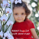 Facebook user Nour Ali shared a photo of Ghadeer and wrote “Congratulations my love, we will miss you a lot, you are the sweetest girl, your innocence is what made you martyred, next to Muhammad and the family of Muhammad: the martyr Ghadeer Muhammad Fatayerji.” Nour also shared an image of Ghadeer. In the image, Ghadeer – a child – wears a red hijab and tan abaya. The background of the photo seems to show other girls wearing the same outfit, suggesting the photos was from a scout or other youth group event.
