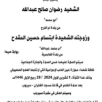 Facebook user Mero Natour mourned the loss of 62-year-old former member of Fatah movement, writer and researcher Radwan Ibrahim Saleh Abdullah (Abu Muhammad) and his wife Ibtisam Hussein al-Maqdah by sharing a charming photo of them and writing that “the eye sheds tears, the heart grieves, and we are truly saddened by your departure. My aunt Radwan Abdullah’s husband and my aunt Ibtisam al-Maqdah have passed away as a result of the [Israeli] raid on Ain al-Delb/Sidon.” A funeral announcement shared by the Saida Gate Facebook page states that Radwan and Ibtisam “will be prayed over during the mass funeral to all the martyrs of the criminal Ain al-Delb massacre committed by the [Israeli] enemy.”