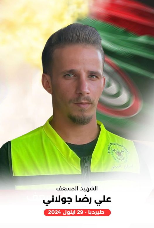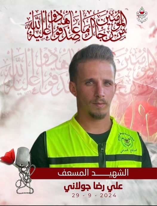 Ali Joulani on Facebook mourned his cousin Ali Reda Golani and shared a picture of him in his paramedic vest. Ali’s brother, Hossam Reda Golani, was mourned in a post by “Amal Movement” on Facebook.