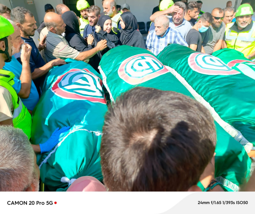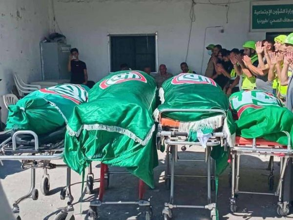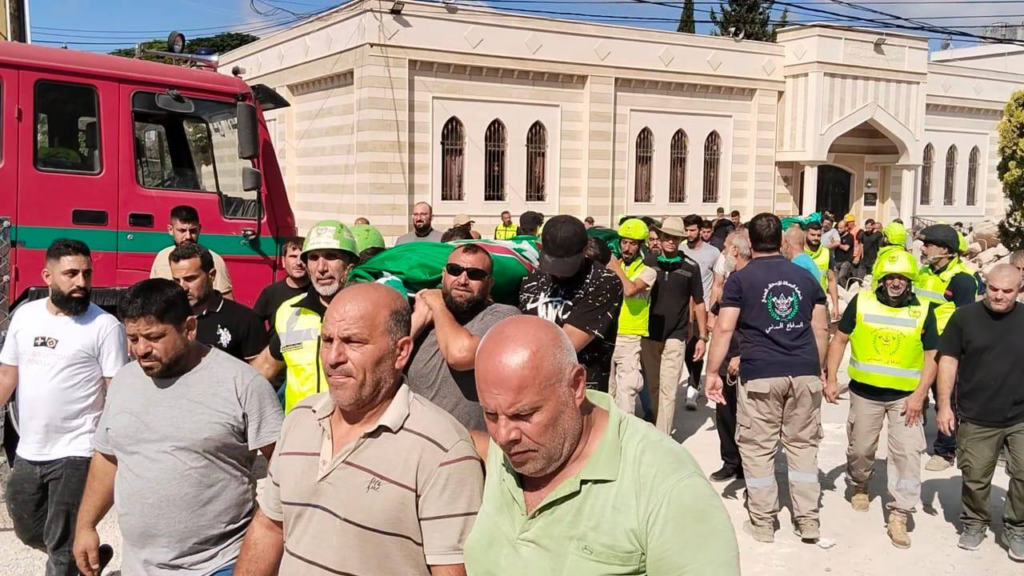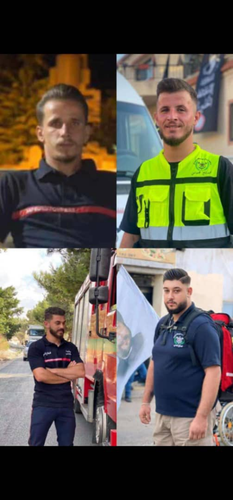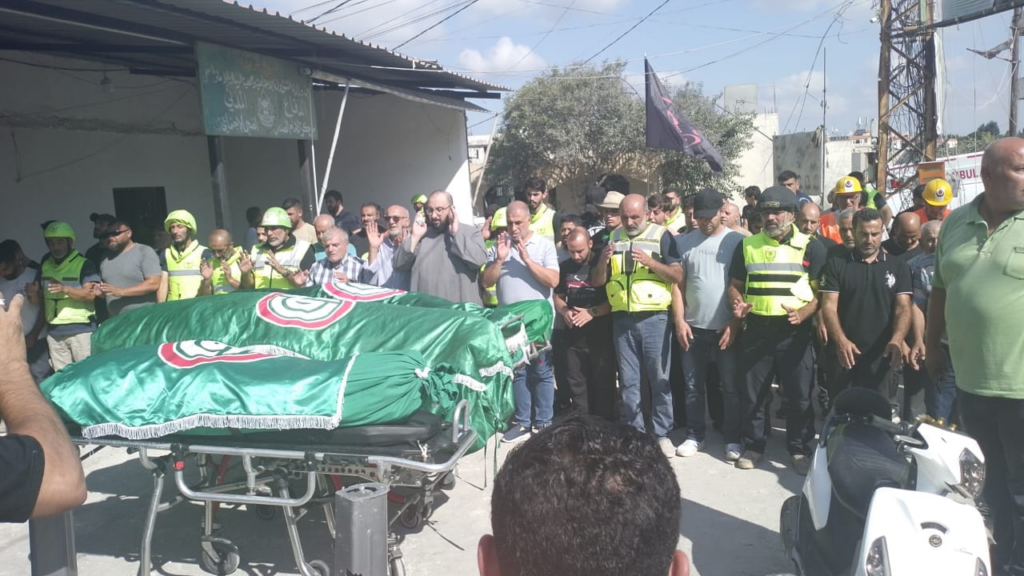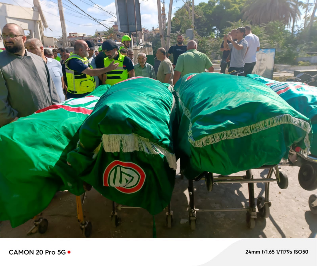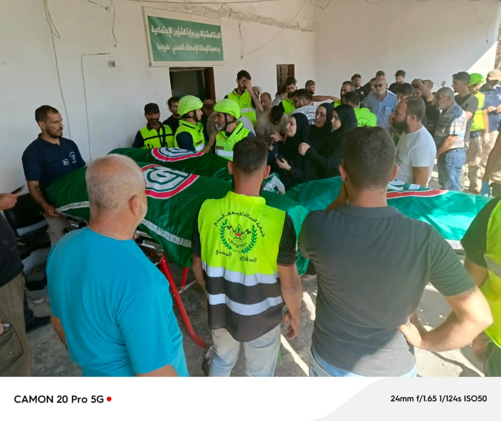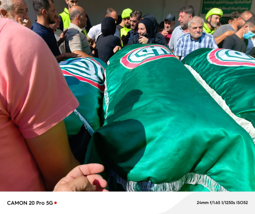 Multiple sources, such as Wadi Press on Facebook, shared pictures of the shrouded bodies of the paramedics wrapped in the Amal Movement flag, with townspeople, officials, and paramedics from the Al-Risala Association attending the funeral of the four young men. Other pictures show the bodies being buried. The funeral was organized by the Amal Movement. As there is no explicit indication of militant activities of the three victims (except Diaa whose civilian status is contested), they have been counted as civilians.