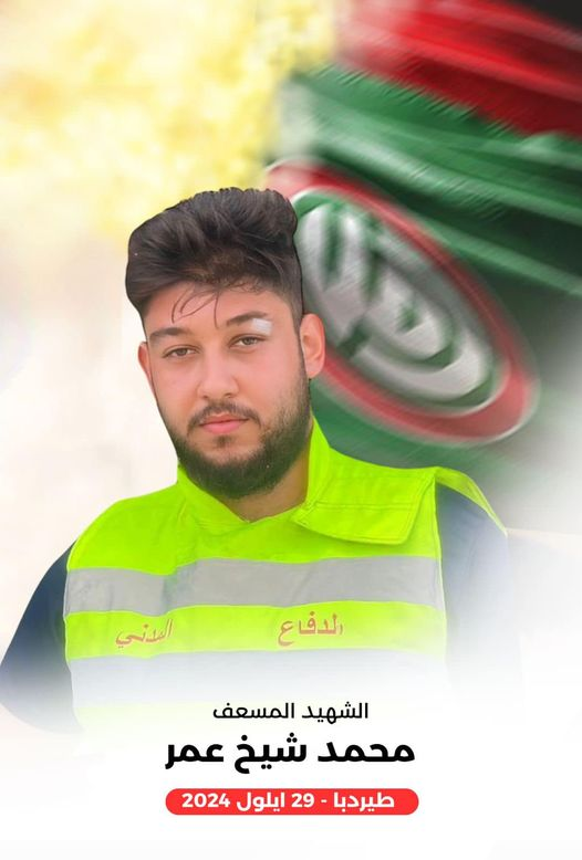 During the night of Sunday, September 29, 2024, at around 1 AM, four paramedics, all young men and one of whom has contested civilian status, were killed and a number of civilians were injured as a result of an alleged Israeli airstrike on a house near the civil defense center associated with the Al-Risala Association for Health Aid in Tayr Debba, a town in the Tyre district in south Lebanon.