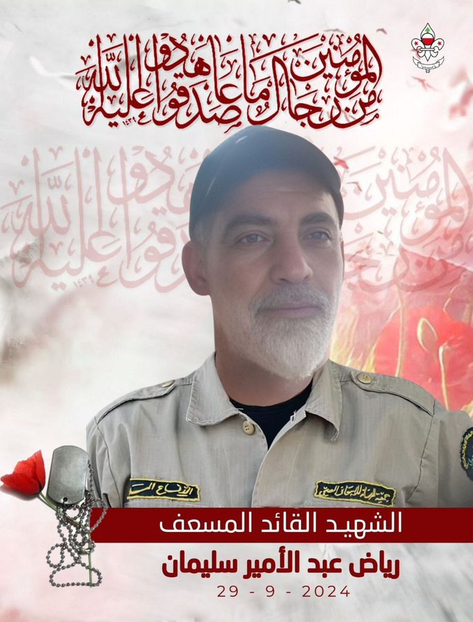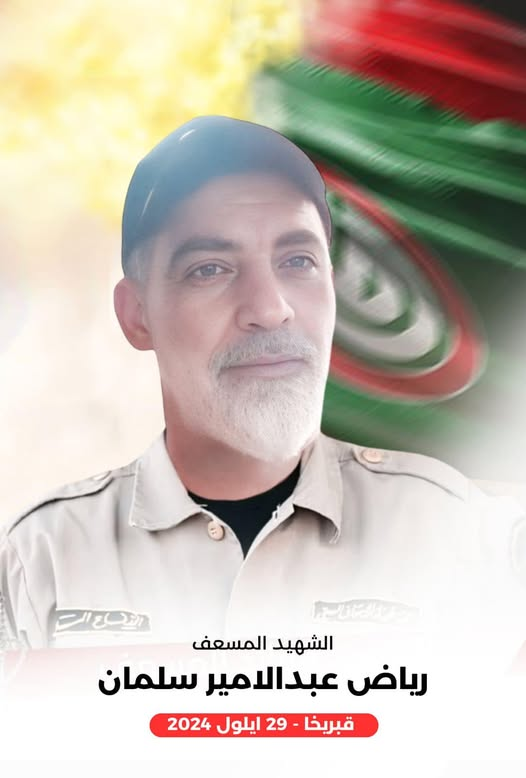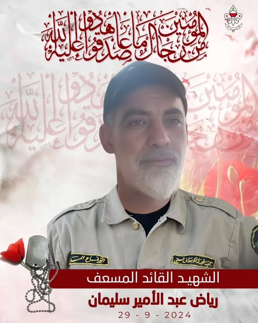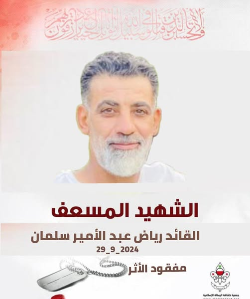 The death of Riad Abdul Amir Salman was mourned by the Islamic Message Scouts Association, which emphasised in its statement that Riad was killed while performing his national and humanitarian duty in defence of Lebanon and the South.” The statement was accompanied by an image of the late Riad in a grey shirt and cap. He was a middle-aged man with large penetrating eyes and a long grey beard.