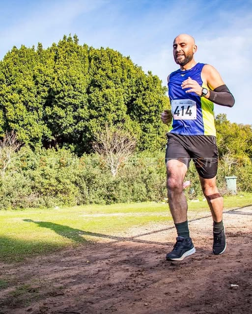 Mazen Shriem wrote in a memory of Bassem: “Congratulations on your martyrdom, Bassem Jaber, the sportsman and good friend,” sharing the image of Bassem crossing the finish line in a race while having the number 414.