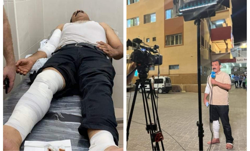 The journalist was identified by sources as 50 year-old Al-Ghad TV correspondent Ibrahim Qanan. Local sources indicated that he was injured while he was working to cover the events. @MOHMEDELHAMRAWY affirmed that their colleague Ibrahim received first aid treatment following his injury. The same source implied that he was wounded because “journalists in Palestine are considered fighters”. Local source claimed that despite his injuries, after being treated, he recounted “the details of how Israeli aircraft targeted an ambulance inside the Nasser Medical Complex”.