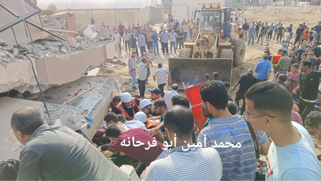 Other sources, such as Palsawa news, reported on the incident the morning of October 8th, at around 9 am. However, it seems that sources referred to when rescue efforts were taking place, and to the moment where victims were pulled from the rubble. It was initially reported by Palsawa news that three killed and three injured people who had been brought to the European Hospital. Later on, while Khuza’a Municipality crews were removing the rubble of the destroyed house, the bodies of Afnan al-Najjar and Ehtiram al-Najjar were recovered from the rubble.