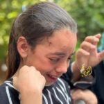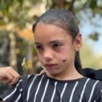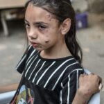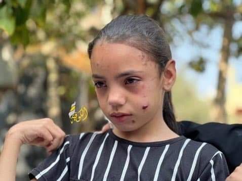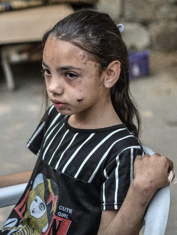 Tala Abu Daqqa, 11, a survivor, was pictured crying in an image shared on social media. It is reported that her father, mother and three sisters were killed in the attack.