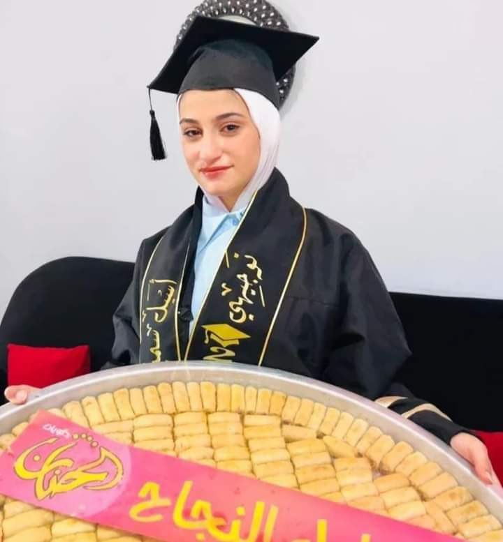 According to the victim’s social media profiles, earlier this year Rana al-Shalab and her husband Samir celebrated both her graduation with a Bachelor’s Degree in General Nursing from the University College of Applied Sciences Gaza, as well as their daughter Aleem’s high school graduation. Muhammed Musa al-Qatnani celebrated his daughter’s first birthday a few days prior to the bombing. Relatives, friends and neighbours mourned the loss on social media, with posts such as “Beneath the ruins of this house, 15 martyrs from the Al-Qatnani family…an entire family removed from the civil registry”, “It is with great sadness that we received the news of the martyrdom of our family and relatives….the martyrdom of Abu Samir Al-Qatnani family and of our dear sister, Rana Nasser, and her husband and children under the Israeli bombing in Gaza…/We belong to God and to Him we shall return… Survival belongs to God/15 martyrs from the Qatnani family”, and another saying “Oh God, the amount of pain/There is sadness in our neighbourhood.”