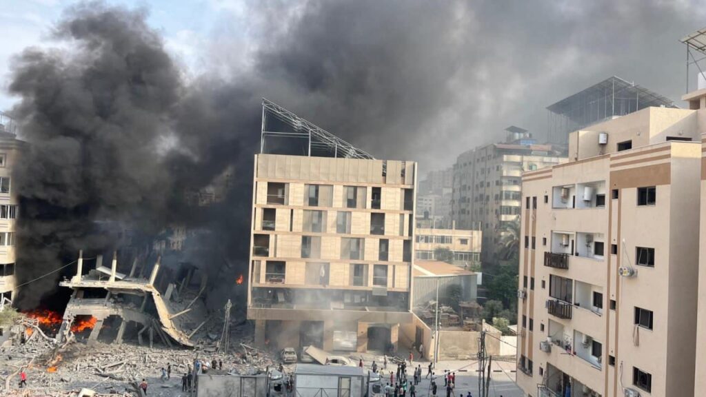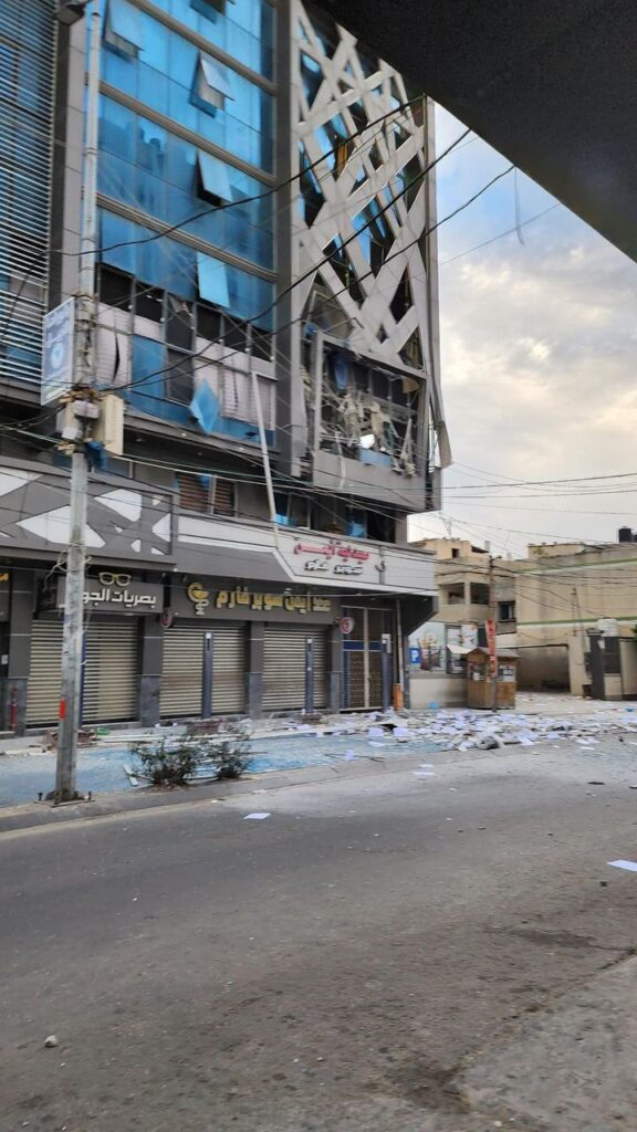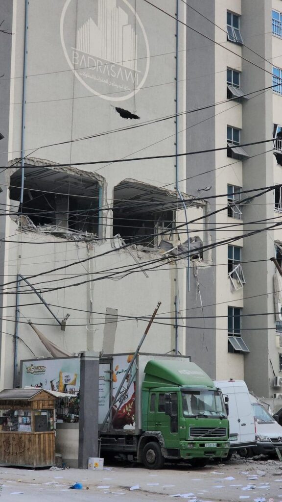 Seba Jaafarawi stated on social media about the incident “Al-Badarsawi building next to Al-Shifa Hospital. My family’s house next to the building, thank God, they came out fine. O Lord, don’t hurt our hearts for our loved ones.” Another source, Anas Alnajjar added that the office of his company Wade Media was also struck.