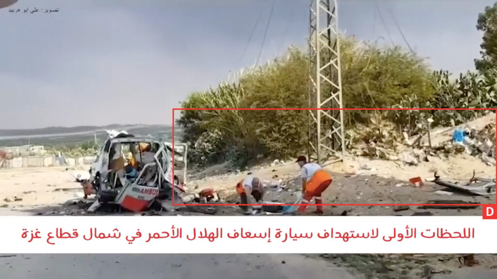 On October 11, 2023, three male paramedics belonging to the Palestinian Red Crescent were killed while carrying out humanitarian work in the Al-Nada Towers vicinity area after the ambulance vehicle was directly hit by an alleged Israeli airstrike. The victims – Khalil Al-Sharif (28 years old), Ahmad Dahman (33 years old), and Yisri Al-Masri (58 years old) – were colleagues.