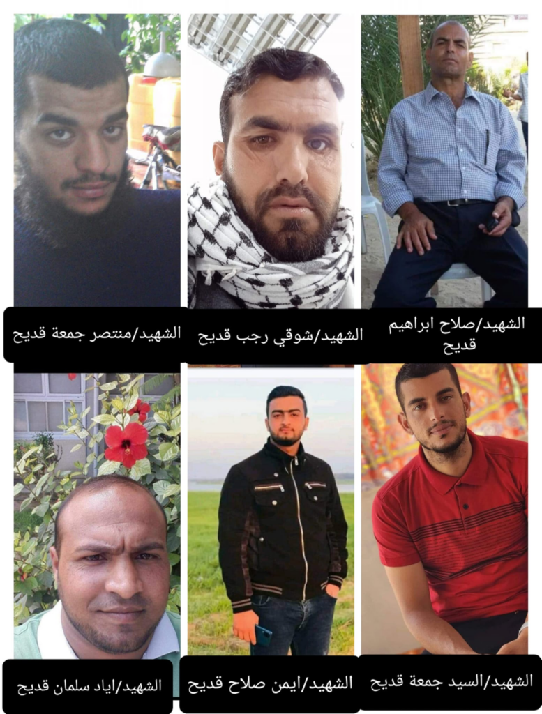 Some sources have stated that 21 members of the Qadeeh family were killed during this incident; Journalist Tayseer Qudeih was alone in stating that the total number of members of the family killed overall is close to 50.