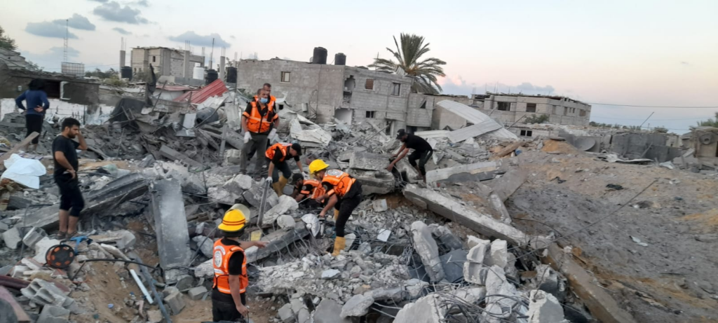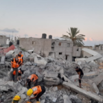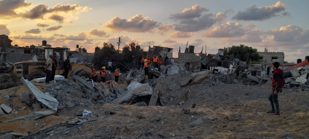 Rafah Municipality shared images of the rescue efforts carried out by the crews of the Central Emergency Committee in Rafah Governorate. Rescuers in orange clothes were seen inspecting the rubble left from the building bombed.