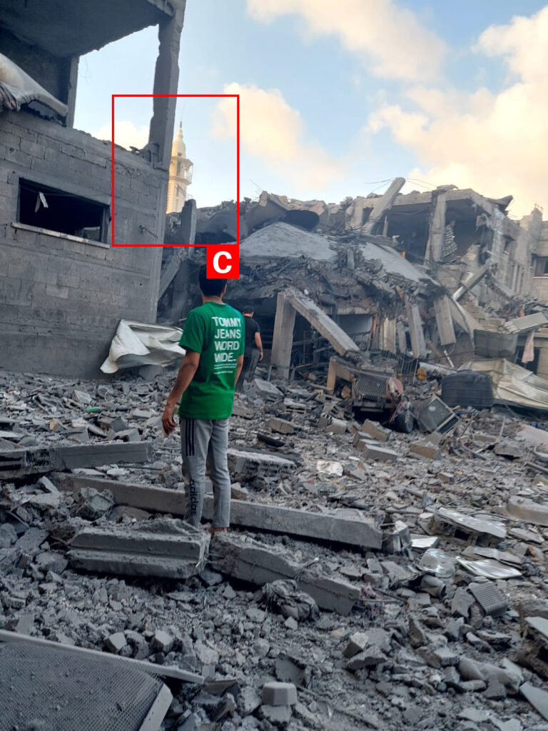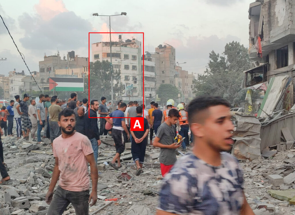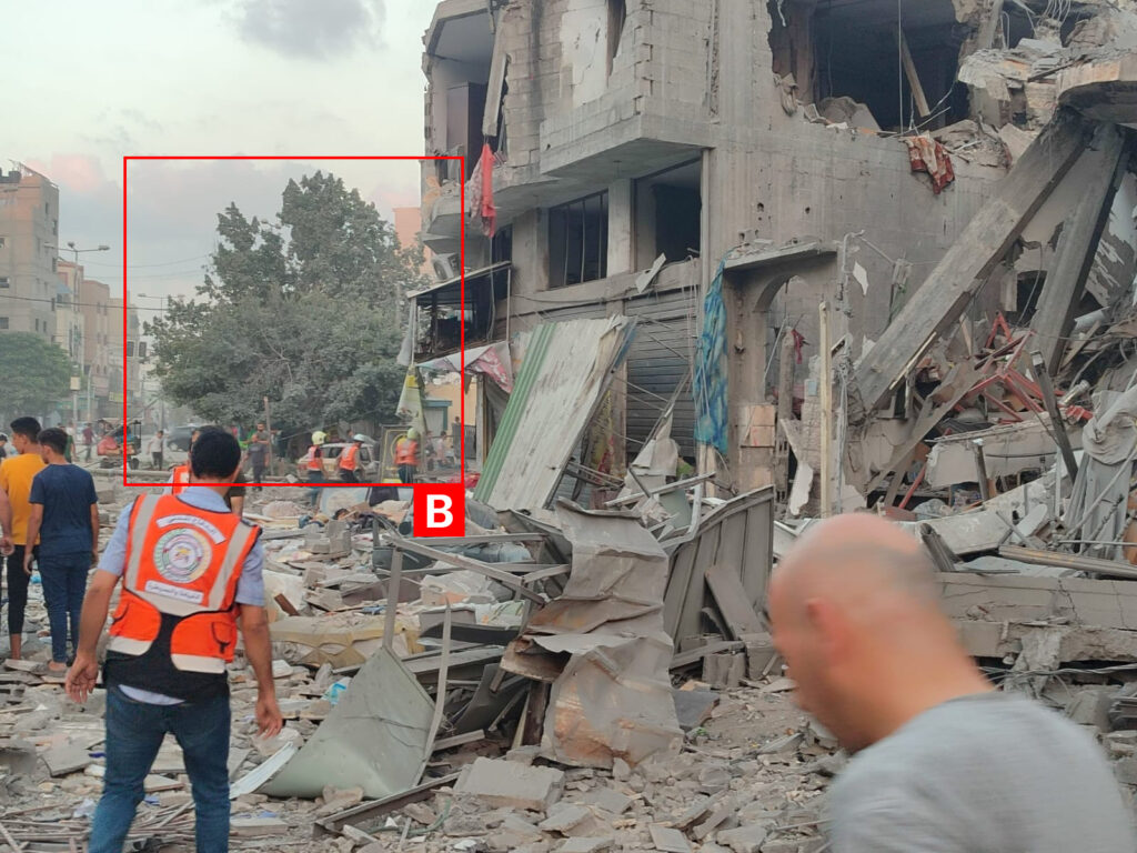 Reports of the incident mention the vicinity of Salah al Din mosque (مسجد صلاح الدين) in Gaza city (غزة). Analysing audio-visual material from sources, we have narrowed the location down to the following exact coordinates: 31.496814, 34.458025