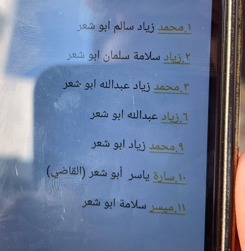 Ziad Salama Abu Shaar (Abu Muhammad), 49, was named on social media as the owner of the residence; he was reported killed together with his two daughters, 22-year old Abeer Ziad Salama Abu Shaar and Nada Ziad Salama Abu Shaar and his two sons, 13-year old Muhammad Ziyad Salama Abu Shaar and 10-year old Mahmoud Ziyad Salama Abu Shaar. Ziad Shaar is seen on an image attached to a Facebook post by adelzourob73 as a middle-aged man in a driver’s seat. Rawan R Abu Taha referred to him as a “good neigbour” in a heartfelt Facebook testimony.