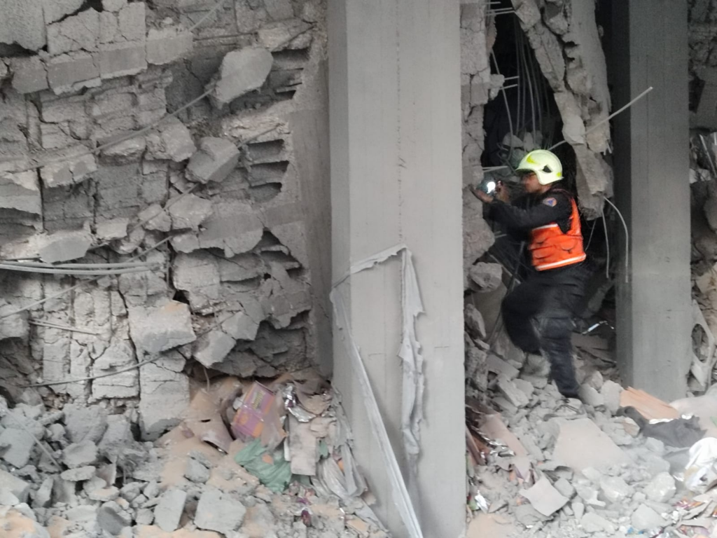 During the evening of Thursday October 12th, 2023, six civilians were reportedly killed and others wounded as a result of an alleged Israeli airstrike on a house located near the University College of Applied Sciences in the Tel Al-Hawa neighborhood, west of Gaza City, in the Gaza Strip. A Facebook post by Dcdgovps included photos of the Palestinian Civil Defense crews working amidst the rubble from the destroyed building.