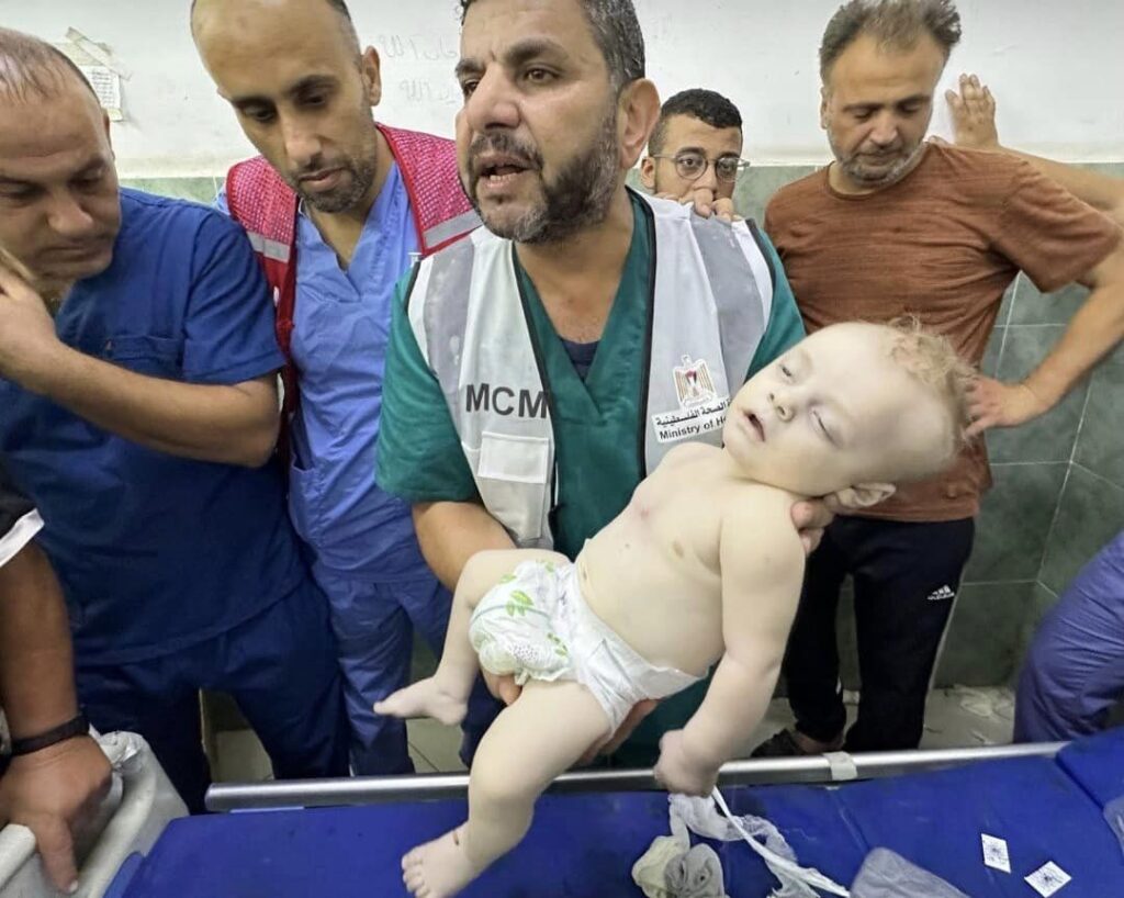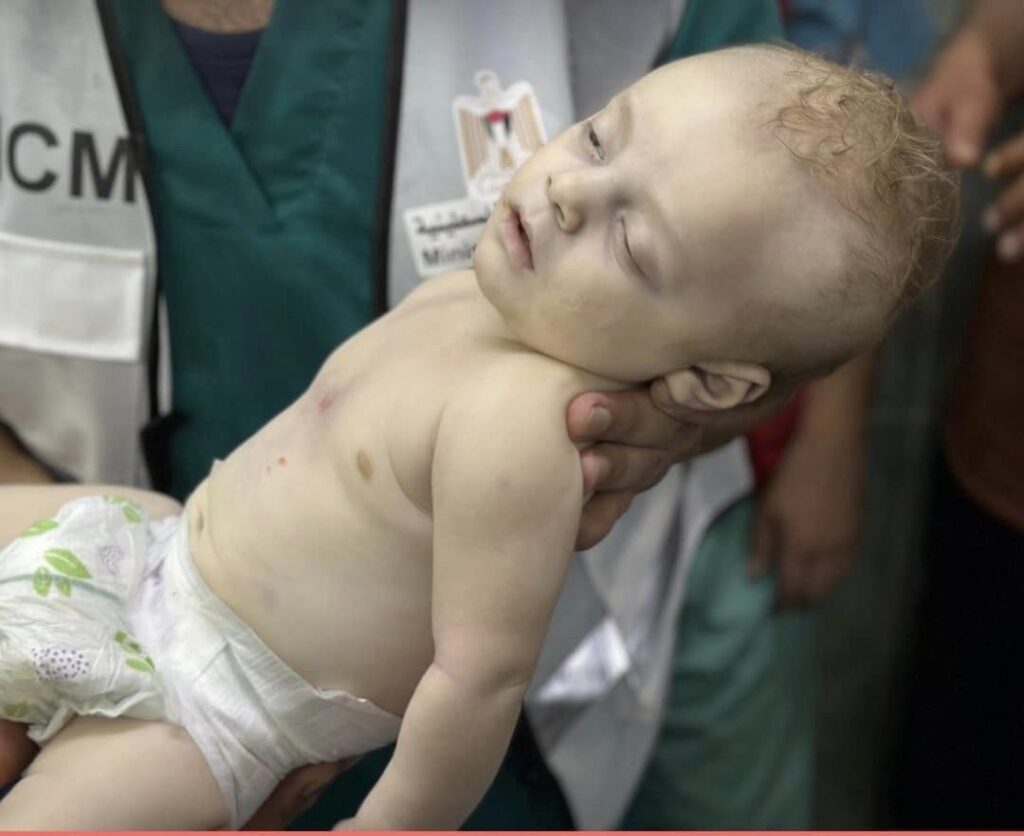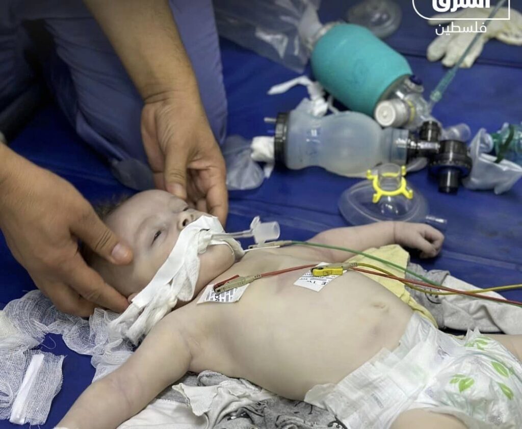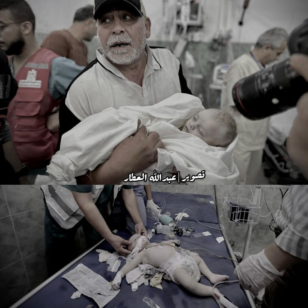 Alsharq News Facebook account and Abdullah Al-Attar shared images of the two-month-old infant Muhammad Basil al-Khayyat who died at the Al-Najjar Hospital after attempts to resuscitate him failed.