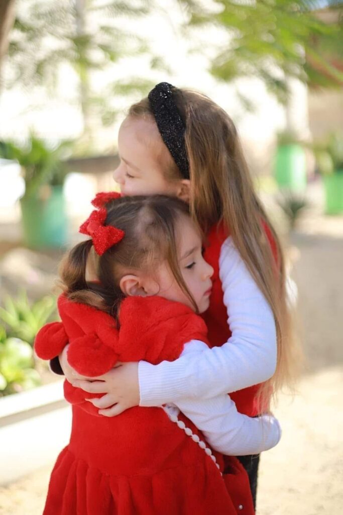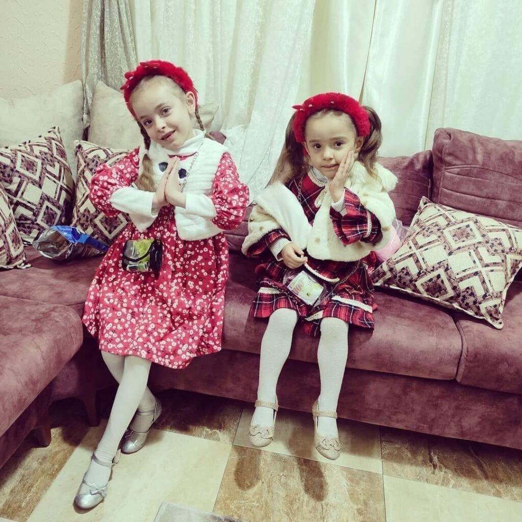 Marwa Fahd wrote a post about the small girls Eileen and Celine, adding a picture of two of them in fancy dress as well as an image of a smiling Eileen in a burgundy jacket and grey beret. She wrote: