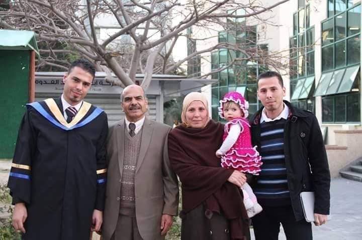 The youngest son of Mahmoud and Raja and Tamer’s brother, 32-year-old engineer Basil Mahmoud Deeb al-Khayyat was killed alongside his 31-year-old wife, a public school teacher of physics, Hadeel Nasse Fakhri al-Khayyat, and their four small children: a two-month-old infant Muhammad Basil al-Khayyat, one-year-old son Mahmoud Basil al-Khayyat, eight-year-old daughter Eileen Basil al-Khayyat, and five-year-old daughter Celine Basil al-Khayyat.