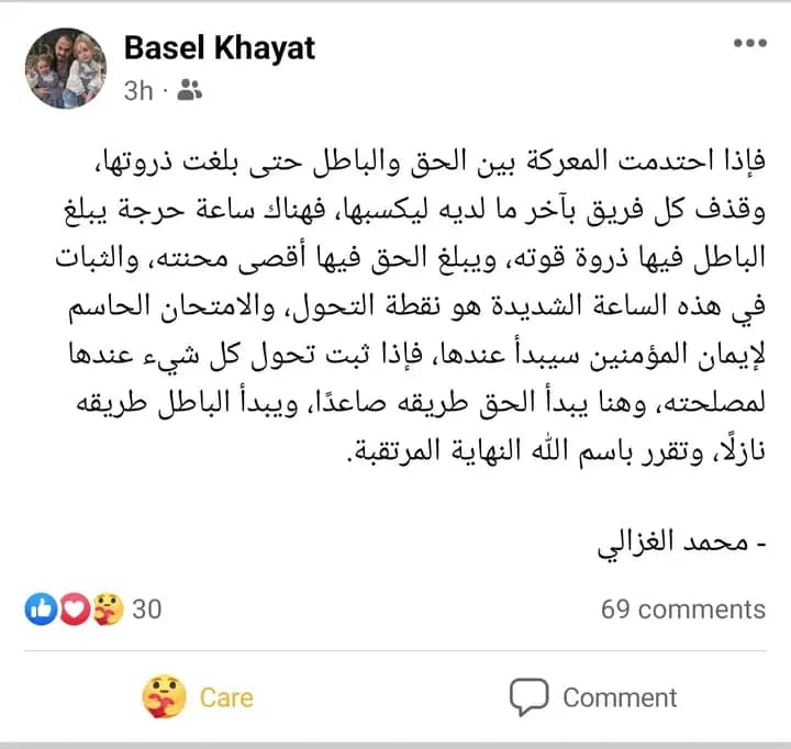 Hedaya Shamun wrote a post about Dr. Mahmoud al-Khayyat, “a friend before he became a relative”. She shared images of the smiling doctor with his wife and sons, one of them wearing a graduation mantle, and the images of his smiling grandchildren, sons and daughters of Basil and Hadeel. She also attached an image where corpses wrapped in white clothes with their names written on them can be seen.