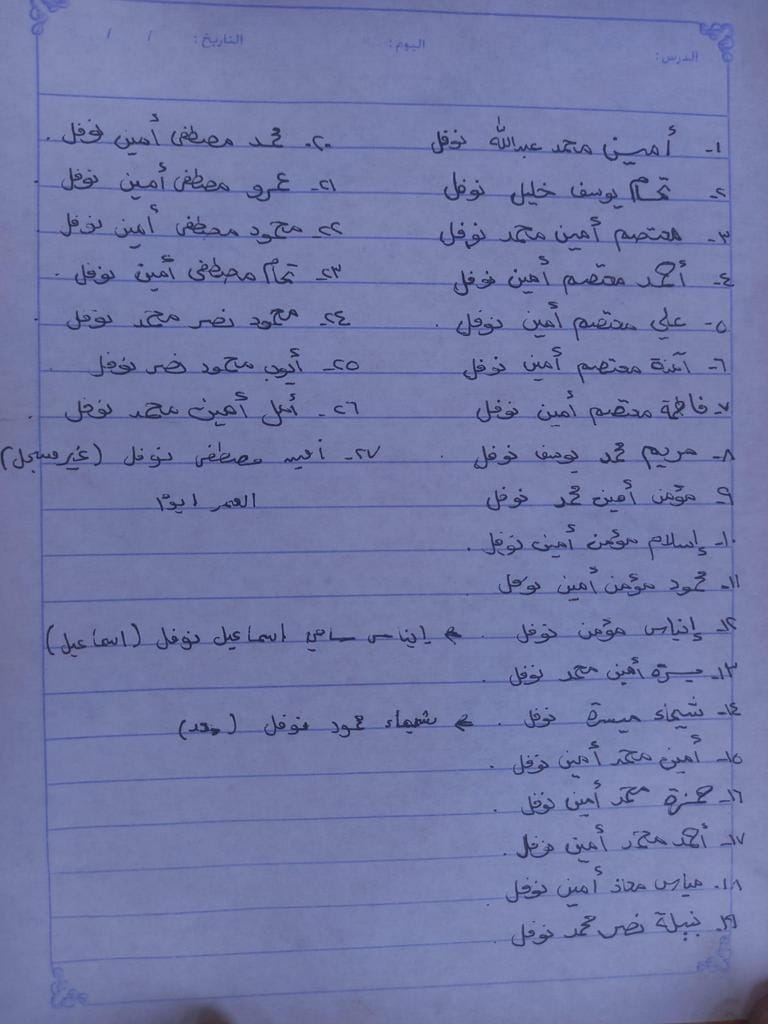 Ameen and Tammam’s other son Mustafa Amin Nofal survived the attack, but lost his 33-year old wife Nabila Nasr Nofal and their four children: a 4-year old daughter Tamam Mustafa Amin Nofal, a 14-year old son Muhammad Mustafa Amin Nofal, a 12-year old son Amr Mustafa Amin Nofal and a 11-year old son Ali Mustafa Amin Nofal.