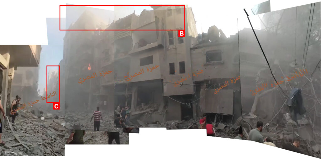 Numerous residences were hit in the strike, with @PalinfoAr stating that the al-Ghoul, al-Halabi, Ashour, Sammour, Harb and Abu Nasser homes were bombed.