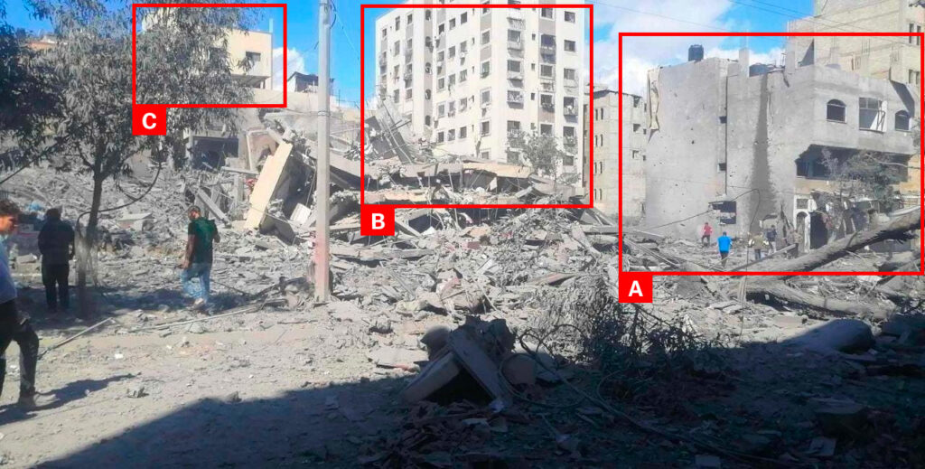 On October 9th, 2024 the Airwars Investigations Unit, along with Sky News, published an investigation geolocating and matching airstrike footage released by the Israeli military with incidents in the Airwars archive. In total, Airwars’ team identified 17 strikes leading to civilian harm from the first month of the war, of which the Israeli military itself had published footage. This strike was among the 17. As such this incident has been reclassified as a declared Israeli strike, rather than a likely one.