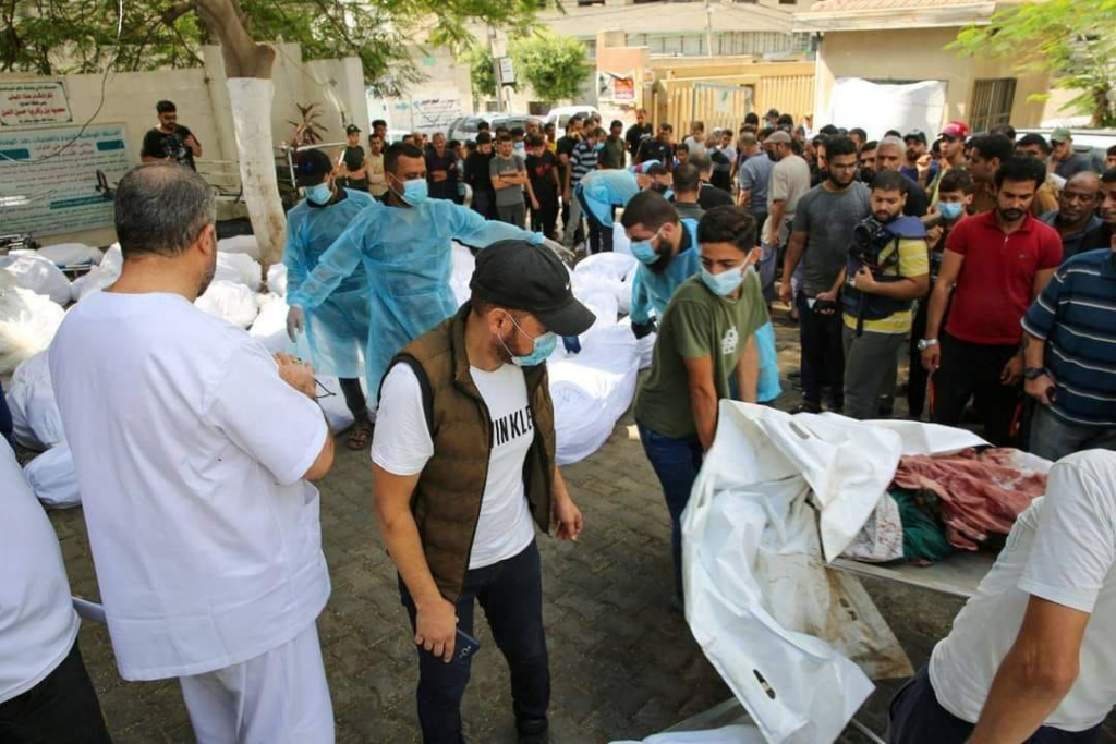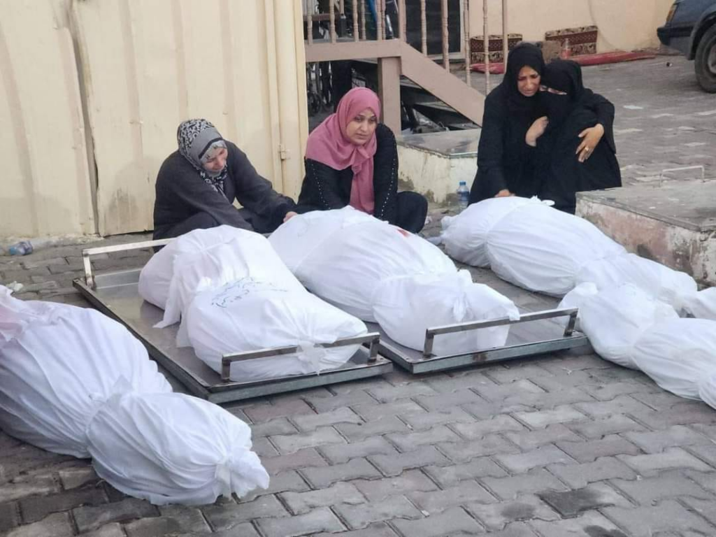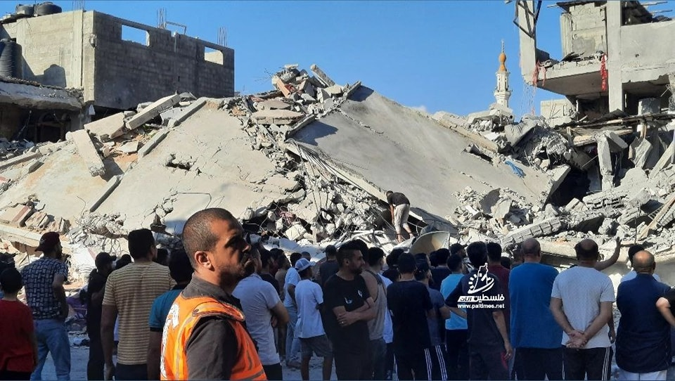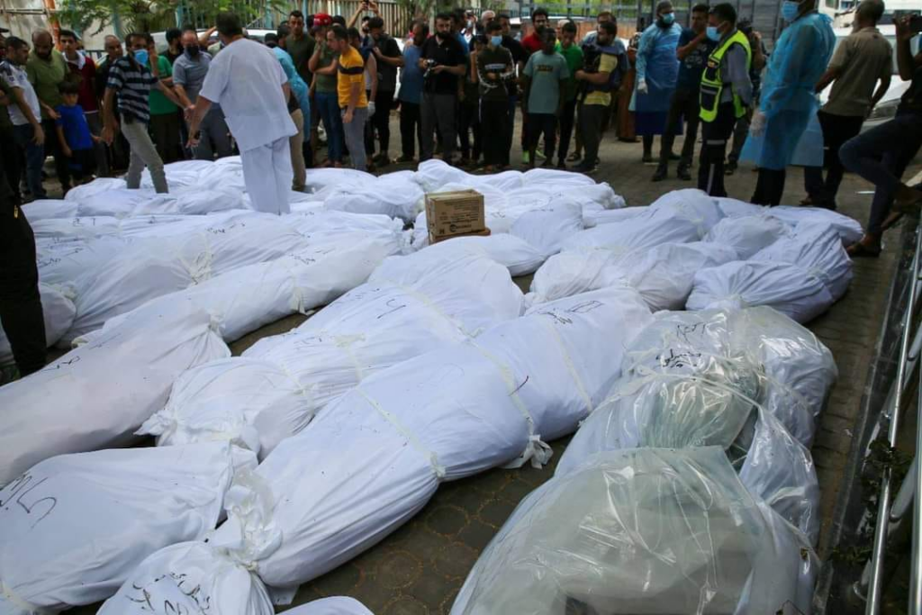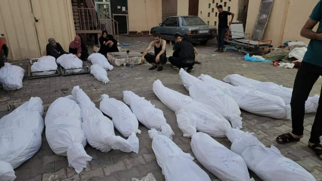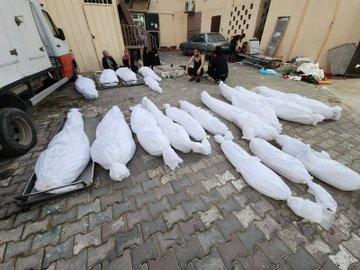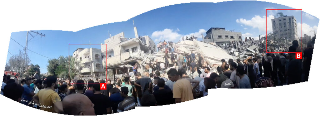 Al Jazeera shared a video of the widespread destruction caused by the bombing, reporting that their correspondent “monitors the effects of destruction from the bombing of the home of the Mukhtar of the Al-Tawil family in the Nuseirat camp in Gaza.” A Facebook user Mokhayaam reported that the place was “leveled completely, ”sharing a video of the destroyed building. Palestine Post shared images of the rescue efforts, saying that the search for victims was still ongoing. A Facebook user Ahmed Adress wrote that there were dozens of bodies of the victims transported from al-Shifa hospital to mass graves, sharing images of the bodies shrouded in white funeral cloth.