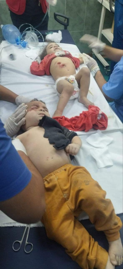 Lynn Iyad Rizq Badawi (8 years old, who based on her name is likely a child of Rizq Iyad Badawi) was injured and treated in hospital. Adelzourob73 reported that Lynn and her family had been displaced by the bombing of Gaza City. Images posted by Sara show four different children being treated for their injuries. @omayyajoha mentioned that the wives of Amal’s children were injured, but did not specify how many and whose wives they are – based on the sources we know at least four of her sons were married. A child named Sulaf Abdelaziz Zagreb was injured in the incident as well, according to Adelzourob73.