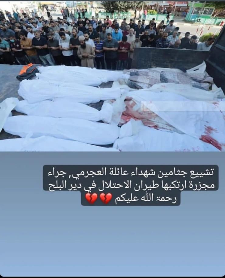 A funeral for the Al-Ajrami family took place in Deir Al Balah cemetery on October 15th, 2023.