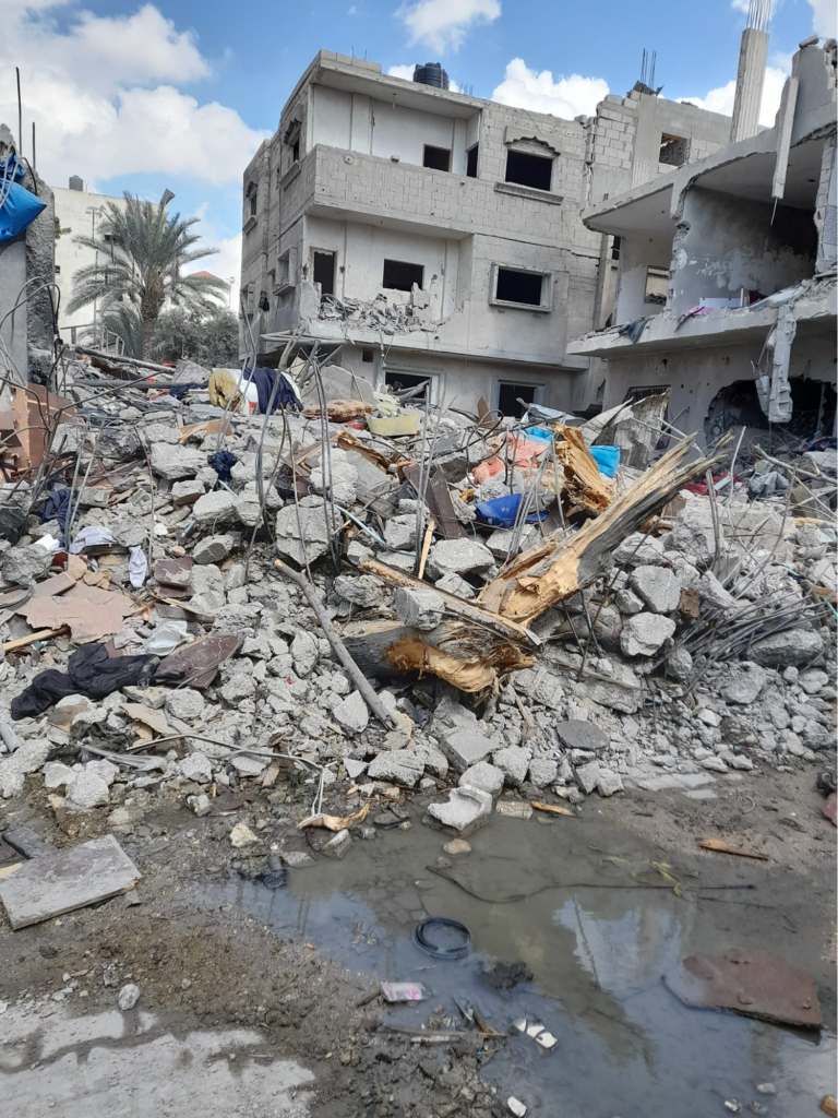 Ayed’s nephew, Raji, who was with him when he received the IDF guidance to evacuate, was staying at another building nearby when he heard the explosion and rushed to the scene. “The destruction was massive,” Raji said. “We started digging people out who were hit by the explosion, some of them were still alive … the gunpowder smell was very strong, the dust was everywhere.” Following the strike, Raja took in the injured children who survived the strike.