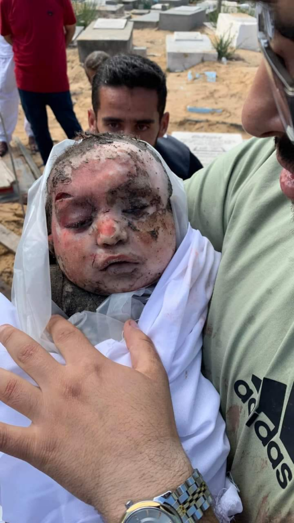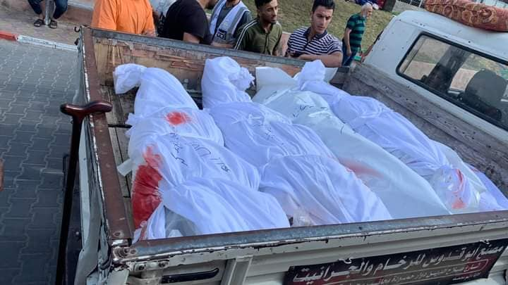 Shehab agency, Jalazone Media Center and local social media users posted photographs of the heavy destruction and rubble left from the Zaher family house. A family relative Mustafa Zahir shared images of a funeral prayer for the family where dead bodies wrapped in white cloth stained with blood can be seen. A post by Facebook user Amir Tariq Daher contained a graphic image of a dead infant.