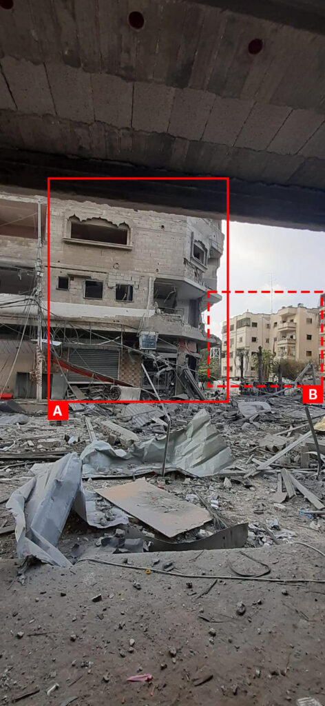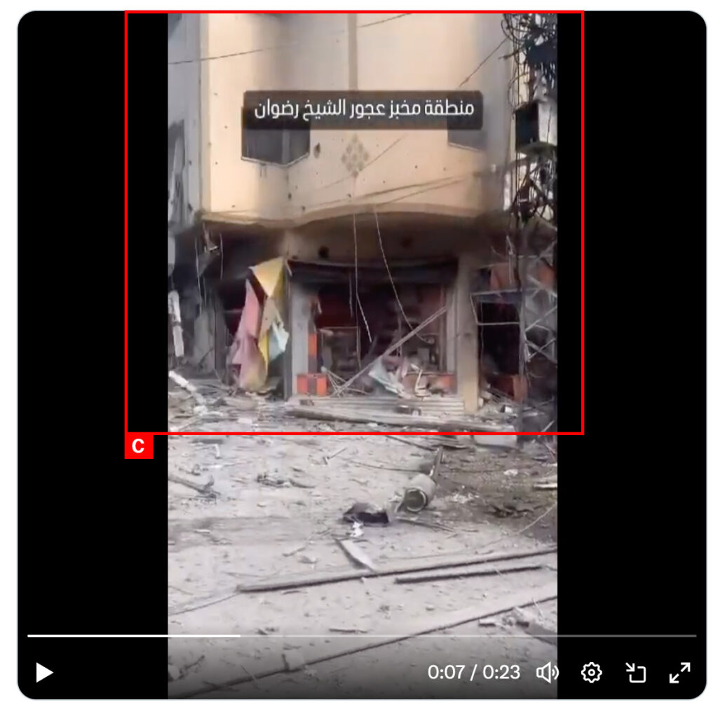 A Twitter/X user Muath Humaid-Gaza (@MuathHumaid) reported “destruction and devastation in the Sheikh Radwan neighborhood” adding that alongside Ajjour bakery dozens of residential units were destroyed. He also added images of severely damaged buildings and rubble. The Palestinian Economic and Nabd News shared images of the heavily damaged 3- storey residential building near the Ajjour Bakery. A Twitter/X user ??????? ???????(@MNashwan90) shared a video showing a devastating aftermath of the strike.