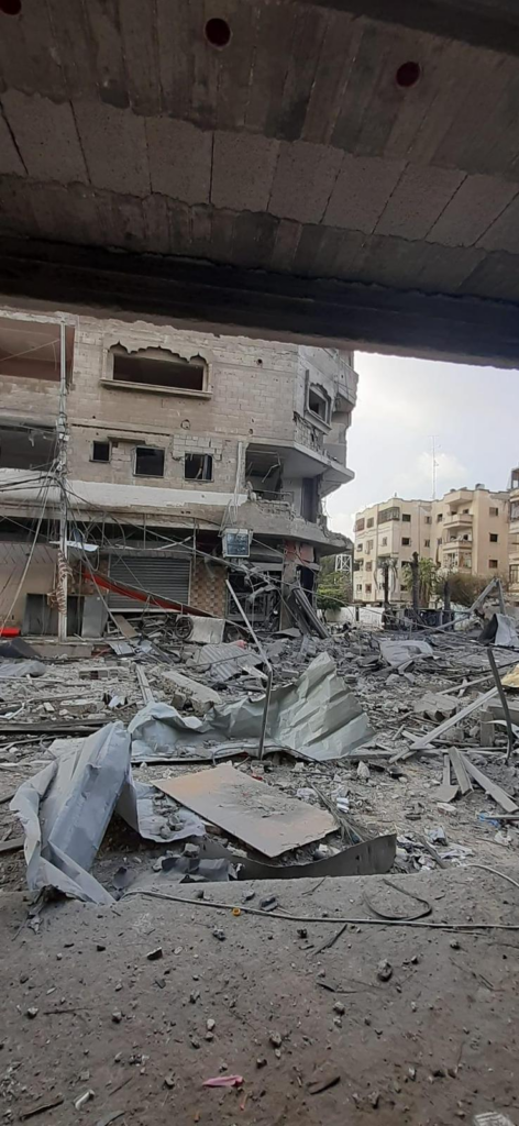 A Twitter/X user Muath Humaid-Gaza (@MuathHumaid) reported “destruction and devastation in the Sheikh Radwan neighborhood” adding that alongside Ajjour bakery dozens of residential units were destroyed. He also added images of severely damaged buildings and rubble. The Palestinian Economic and Nabd News shared images of the heavily damaged 3- storey residential building near the Ajjour Bakery. A Twitter/X user ??????? ???????(@MNashwan90) shared a video showing a devastating aftermath of the strike.