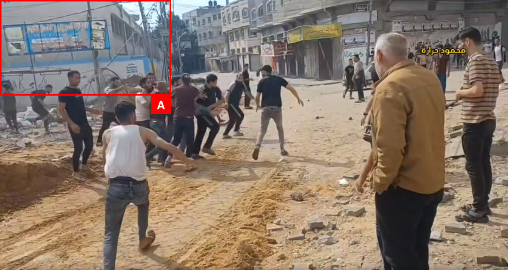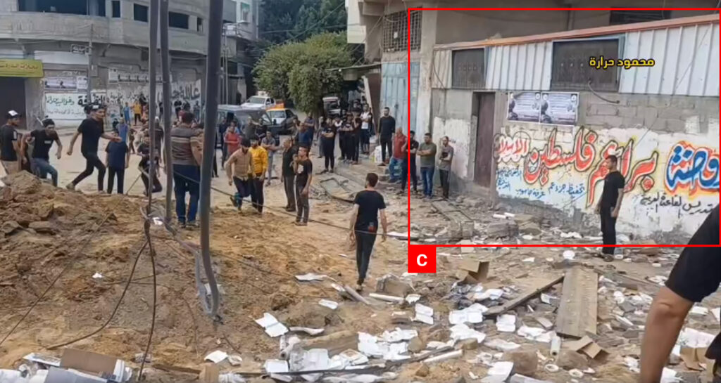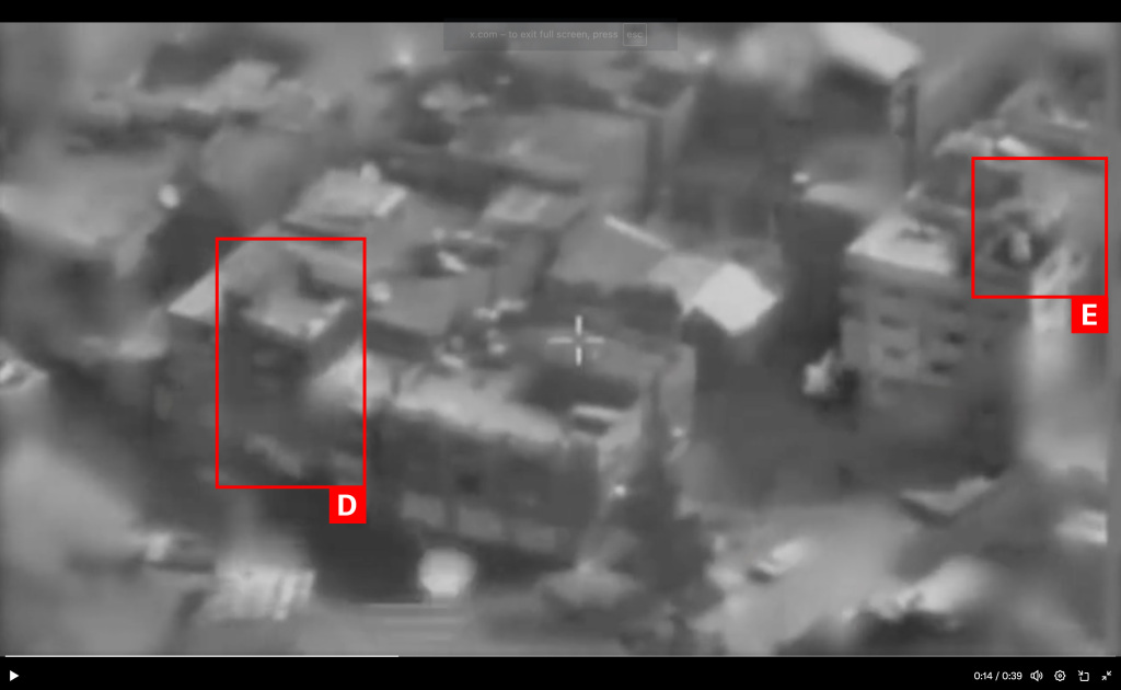 Reports of the incident mention an alleged strike on a residential building on the al Khalayel Road (طريق الخلايل), east of Gaza city (غزة). Analysing audio-visual material from sources, we have narrowed the location down to the following exact coordinates: 31.497167, 34.471646. The Airwars team matched these exact coordinates to a screenshot taken at 0:14 of the strike video shared by the IDF to Twitter/X (see strike reports below).