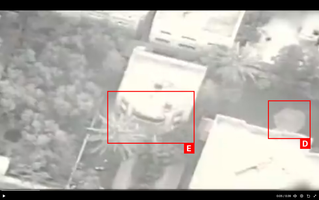 Reports of the incident mention Nuseirat camp (مخيم النصيرات) to the east of Deir al Balah (دير البلح). Analysing audio-visual material from sources, we have narrowed the location down to the following exact coordinates: 31.437817, 34.388418. The Airwars team matched these exact coordinates to a screenshot taken at 0:05 of the strike video shared by the IDF to Twitter/X (see strike reports below).