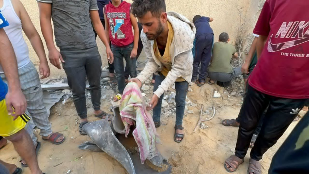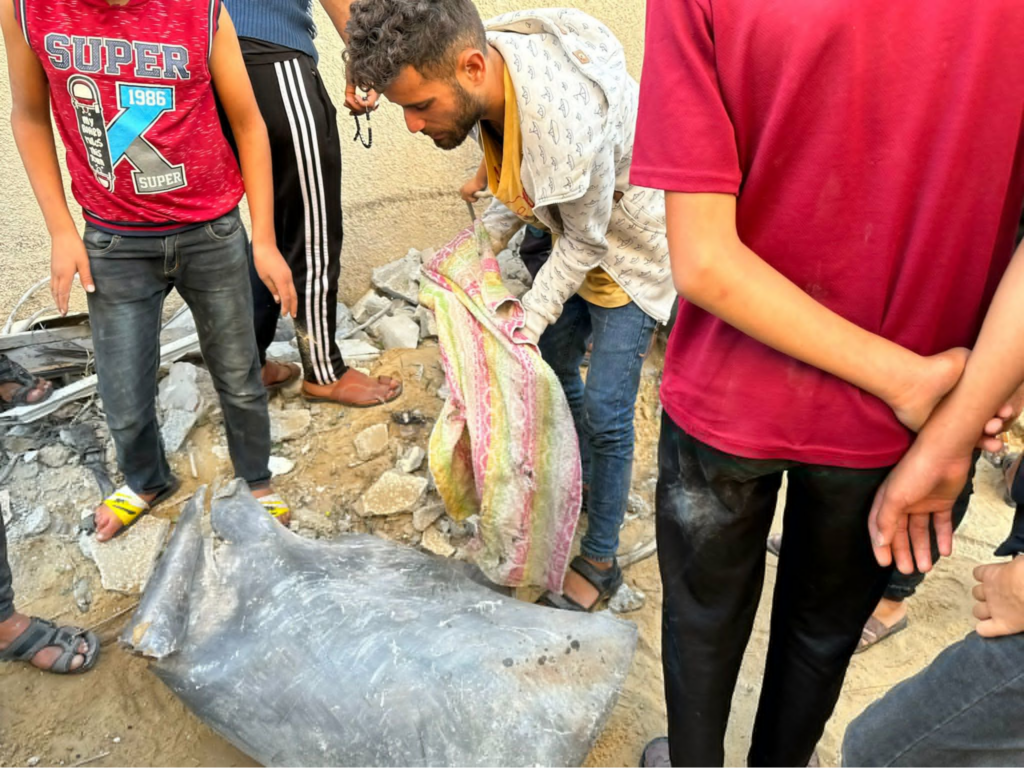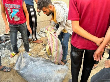 Photos of the shrapnel from the weapon that hit the house have circled social media, as have photos of injured people, the rubble, and victims in body bags. Family and friends have written messages on Facebook. Mosa, the brother of Elham, wrote “With hearts that believe in God’s will and power, today my beloved sister, the martyr, bled (Elham Hamdan Abu Muammar). Her husband, the martyr (Muhammad Ihsan al-Lamdani), and their martyred sons”. Mohammad wrote “May God have mercy on your soul, O Abu Hassam, a clean, respectable and decent man. I testify to your honesty and politeness. A thousand mercy and light descend on your grave, my dear. May God reward you, Khan Yunis. We belong to Allah and to Him we shall return.”