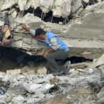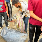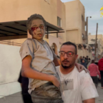 18 year-old Dima al-Lamdani lost most of her family, including her parents, seven siblings and four members of her uncle’s family. Dima, who was trapped under rubble after the explosion (and is pictured with cuts on her face), described the horror of waiting to be found: “The time I spent waiting to be found were some of the most horrifying moments. I was about to lose my mind.” She was luckily found alive in the rubble after waiting for help for several hours. In an interview with the Reuters she said “This is a nightmare. It will never be wiped from my memory,” she said. “I had a sister, 16. They wrote my name on the white sheet they wrapped her body in, they thought it was me.” To the Guardian, she spoke of her disillusionment of a future without her family: “I am crumbled now. No dreams, no hopes, no plans. I can’t imagine my life without my mother, sister and father. The Israeli forces betrayed us. There is no place that is safe.” Dima, her brother, and her two younger cousins were pulled from the rubble and were the only survivors from the family. This coincides with another source, Bashira Akkad, which also mentioned that “only 4 of them survived serious injuries”.