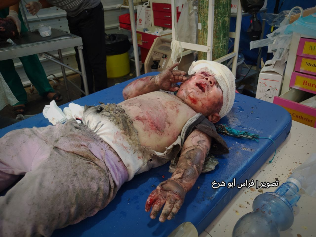 Khan Yunis City posted that four injuries resulted from an airstrike in Batn al-Sameen while multiple sources reported on “dozens” of injuries. Very graphic images posted by Hamza Soqor show at least two children, including an infant, among the injured and a video posted by Amr Tabash shows at least four injured children arriving at the hospital in an ambulance.