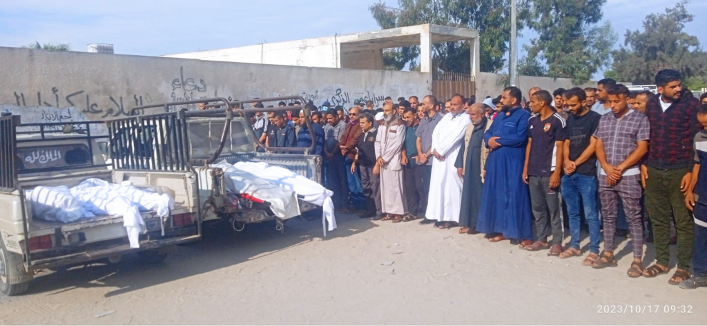 At dawn on Tuesday, October 17th, 2023, an alleged Israeli airstrike hit a five-storey residential building, where at least nine families reportedly lived. At least seven members of the Zorob family along with at least 18 other civilians were killed, while at least four civilians were injured – including children.