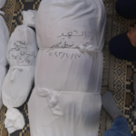 Safaa’s death was mourned by her uncle, a retired medical doctor based in the UK, Omar Hassouna, who shared that his niece was “polite, helpful, and loved by everyone,” having seen her for the last time in January, during his holiday in Gaza. According to Omar, Safaa’s parents managed to survive the strike, but were “in shock and devastated by her death.” He also shared an image of Safaa – a young woman in a white hijab holding a poster with the inscription “Student_today….Pharmacist_tomorrow”.