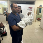 On Twitter/X social media platform, @AJA_Palestine and other users shared pictures from the hospital where Hatem Omar can be seen collapsing from the shock and breaking down in tears upon seeing the bodies of his relatives and learning that his wife, children and grandchildren had also suffered injuries as a result of the bombardment. Later, Hatem stated that he had become “part of the event.”