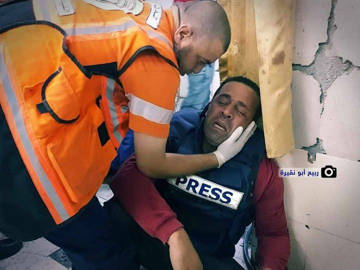 While one source on social media claimed that there were 12 killed in the strike, media outlets like Shehab Agency and Alray reported on the death of 22 civilians. The Palestinian Information Center stated that 25 civilians had been killed, sharing video footage of the bodies of at least two children killed, one of whom appears to be an infant. Another source on social media, Jarad, shared an image of a middle-aged man in a press vest collapsed in grief. Sana news added that “others were injured” in the bombing, without specifying the number or details of those injured, while the Voice of the Nation newspaper quoted Shehab Agency and the Ministry of the Interior in Gaza as updating the death toll to 28 killed, alleging that: “While pressuring the residents of northern Gaza to move towards the south, Israel is intensifying its bombing of various areas of southern Gaza.”